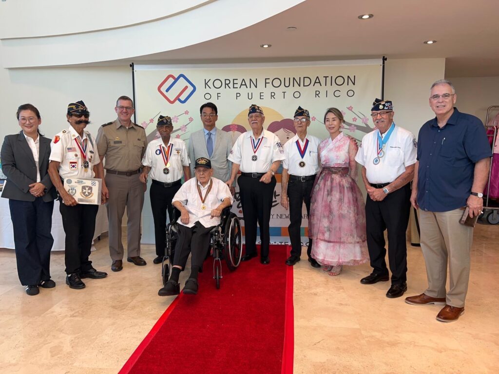 1. Sangpyo Suh, Consul General, Republic Korea in Atlanta, Georgia. 2. Pablo José Hernandez, Resident Commissioner 3. Eddie Charbonier, P.R State Representative 4. BG Paul W. Dahlen 5. Hon. Oliver Gillier, Belgium 6. Hon. Antoine de Marsily, France 7. Hon. Cyril Meduna, Chile 8. Council Eduardo Semidey, Spain 9. Veterans who fought during the Korean War: Victor La Barca Lago, Juan Barbosa, Juan Acevedo Carrión, Ismael Heredia, Wilberto Medina, Freddy Molina, Arturo Pagán, Luis Rivera Pérez, Benjamin Reyes, José Vargas