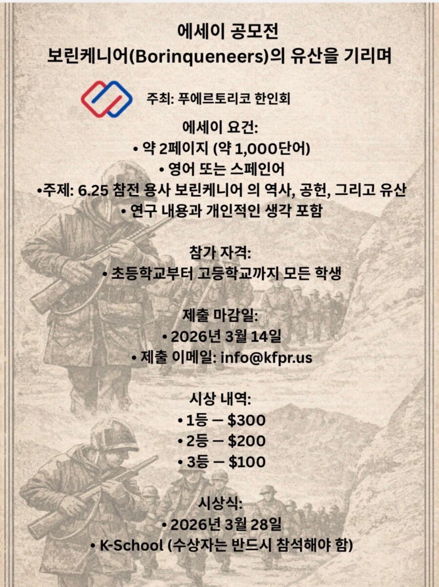 On March 28, an awards ceremony for the “Korean War Essay Contest” was successfully held at K-School, under the Korean Association of Puerto Rico. At this event, Korean War veteran Ismael Heredia attended as the presenter, offering words of encouragement and congratulations to the students.